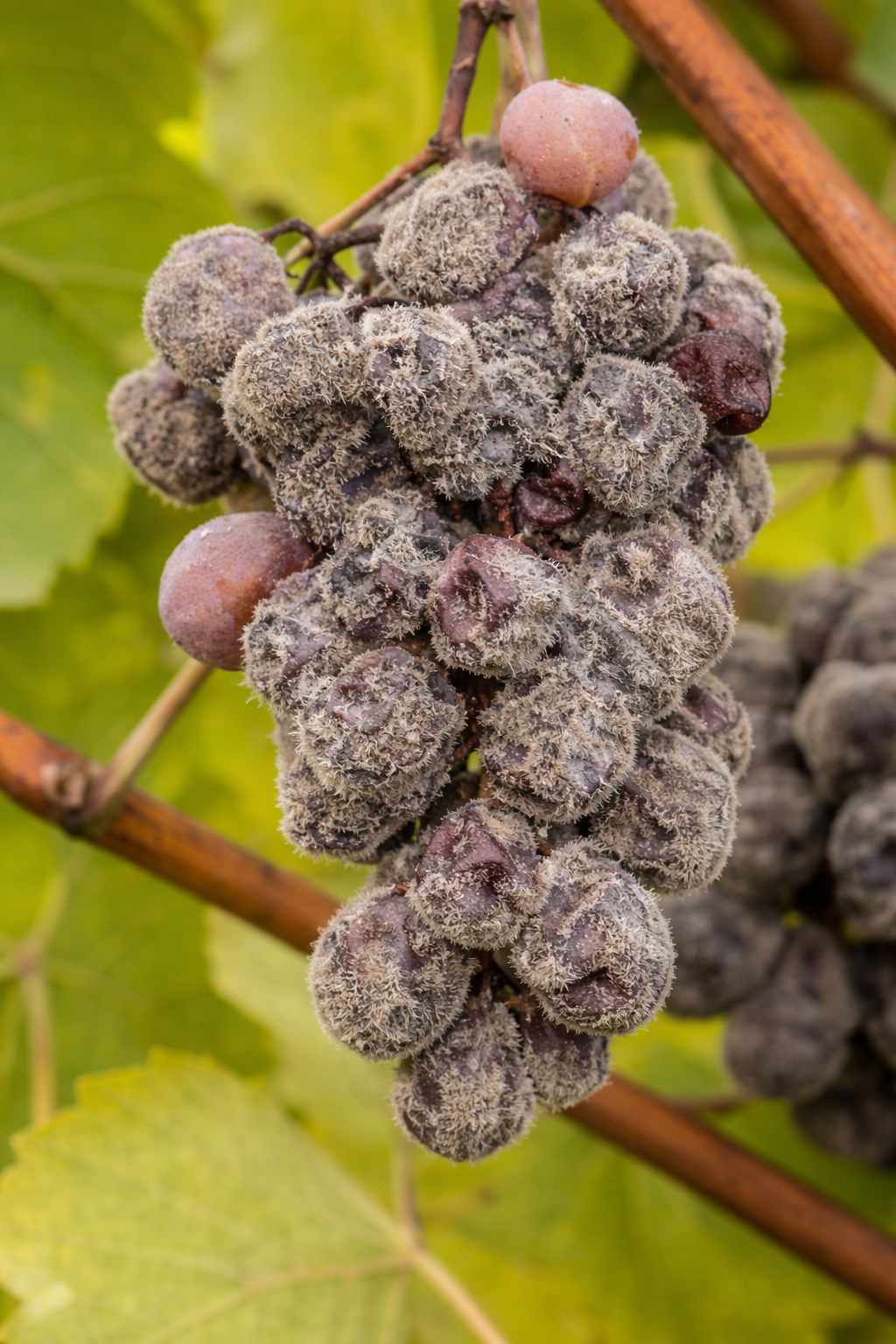 Entre todas las enfermedades del viñedo que afectan al racimo, la más conocida es la causada por Botrytis cinerea, responsable de la llamada podredumbre gris. Se trata de un hongo de evolución rápida que cubre las bayas con masas de micelio grisáceo.